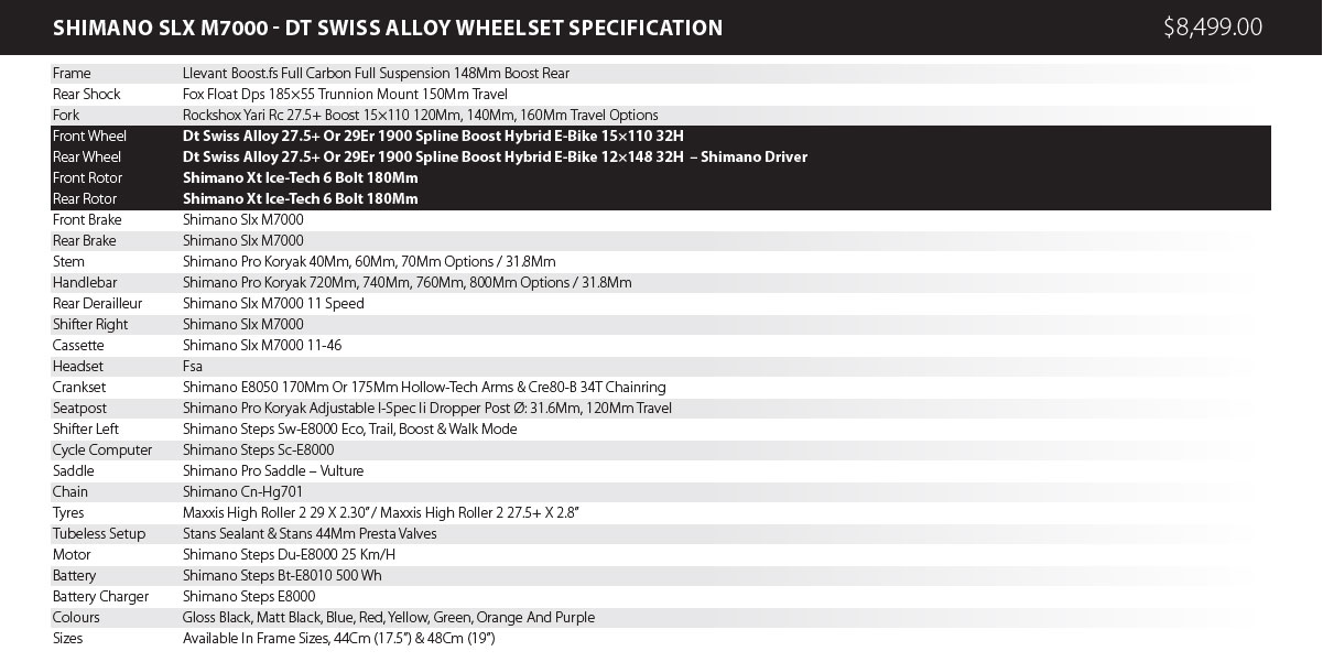 The Llevant Boost FS is geared towards maximum E-Fun and safety no matter how rugged the terrain! It ploughs serenely through uneven terrain with high-quality Rockshox suspension and 29er or 27.5 Plus tyres with sensational rollover behaviour and grip. Powered by Shimano’s new Steps MTB E8000 motor, lightweight and compact, yet extremely powerful and very intuitive and dynamic to ride.